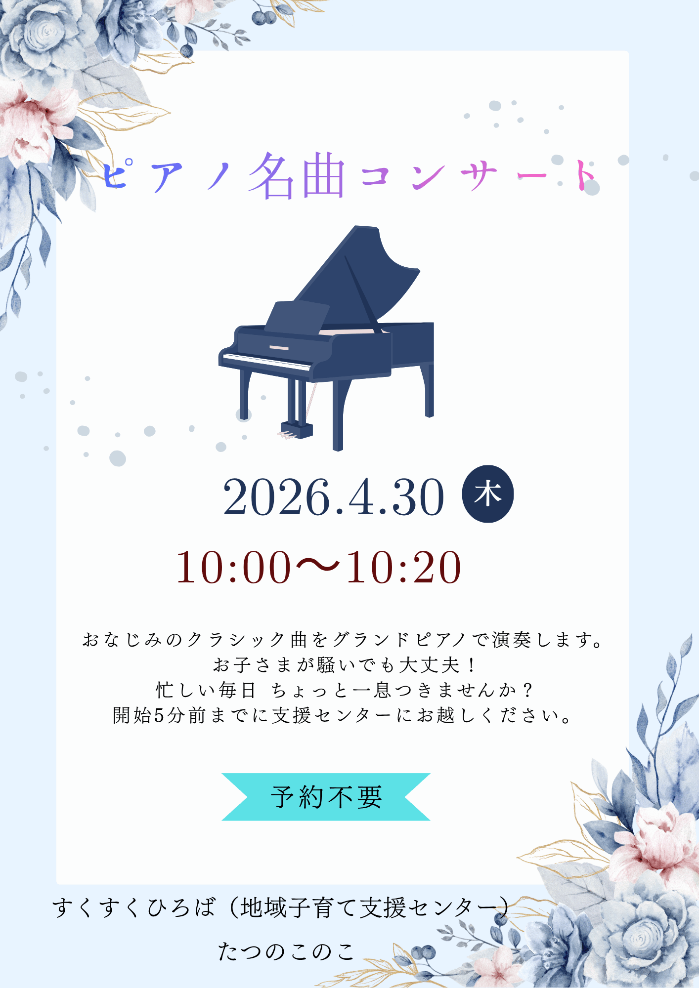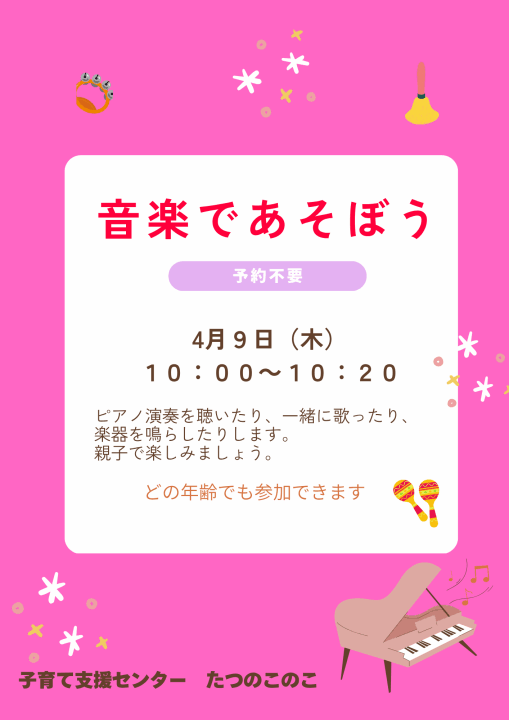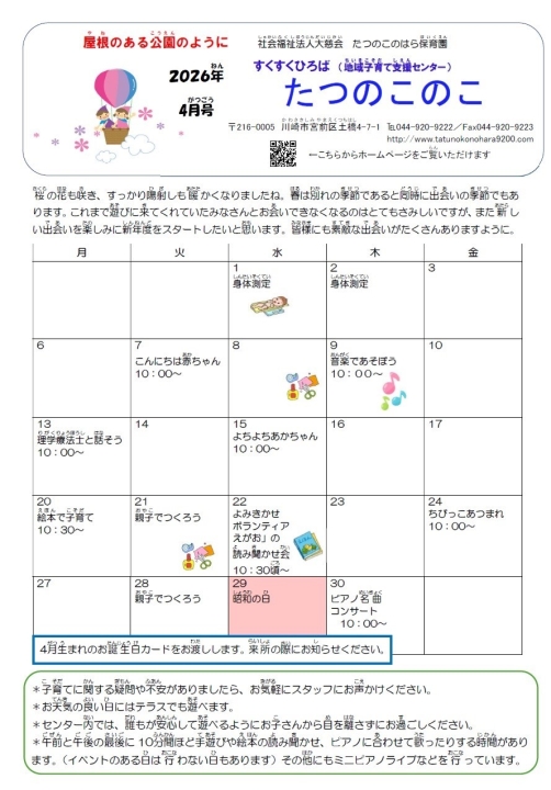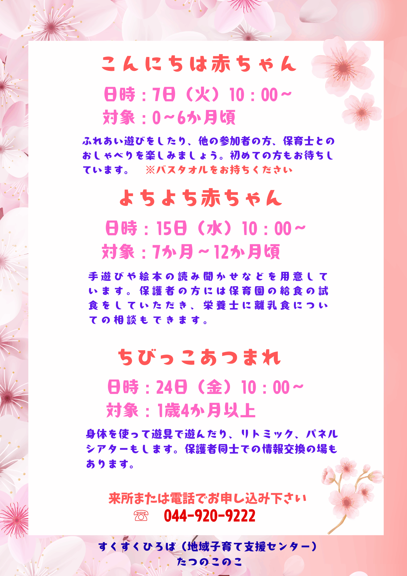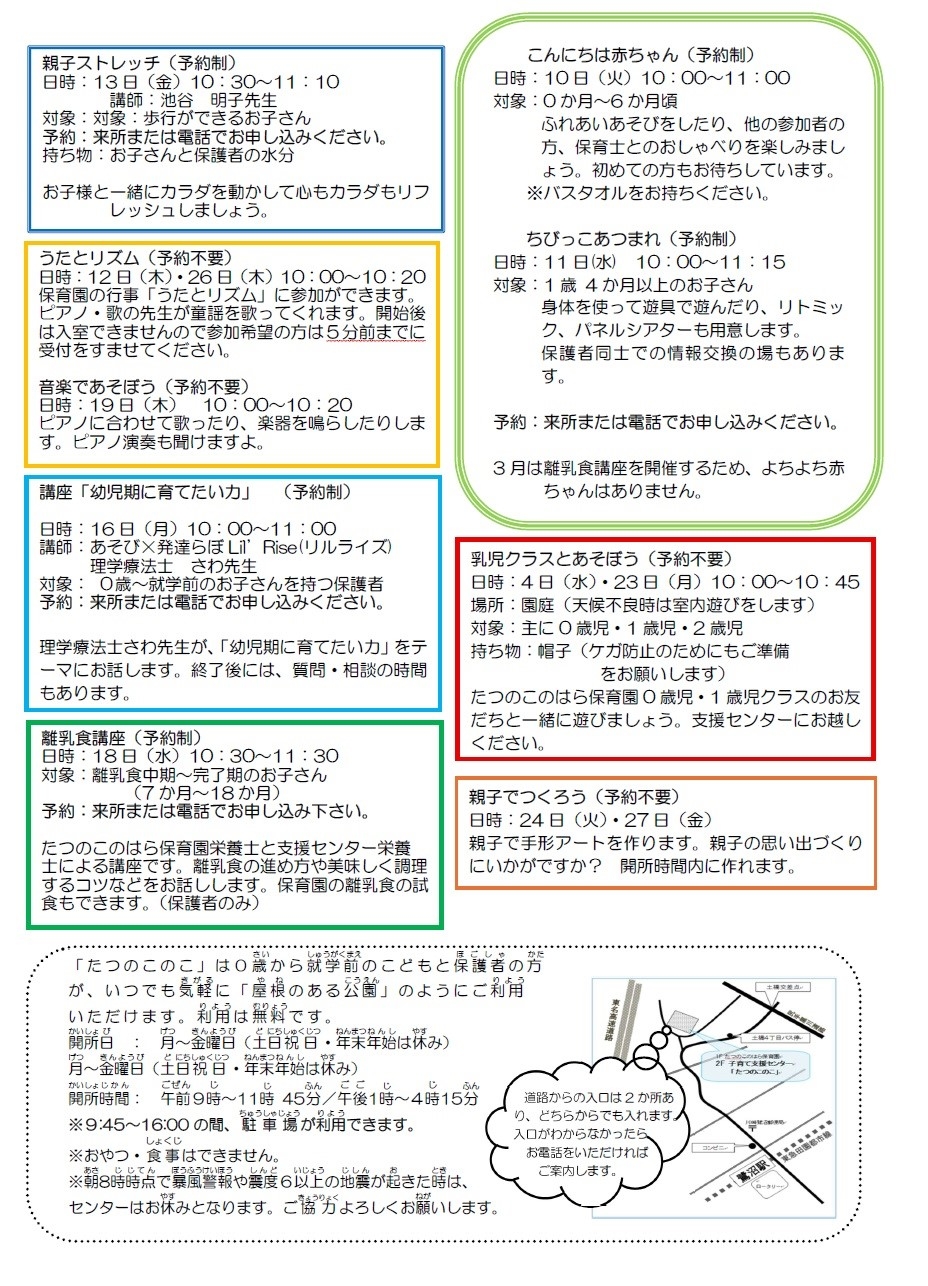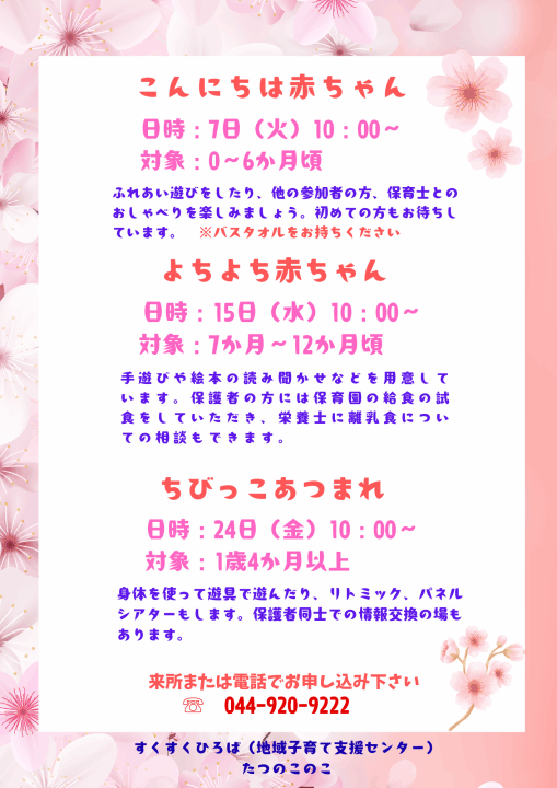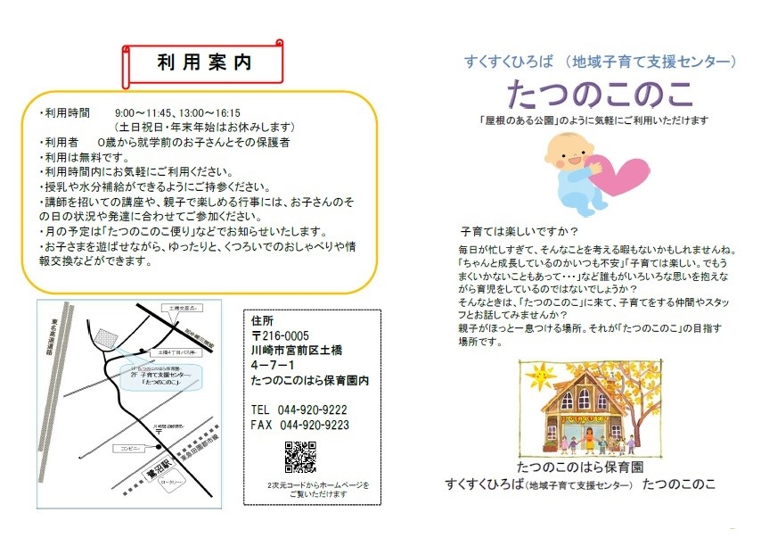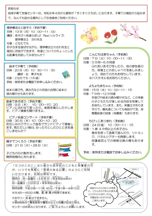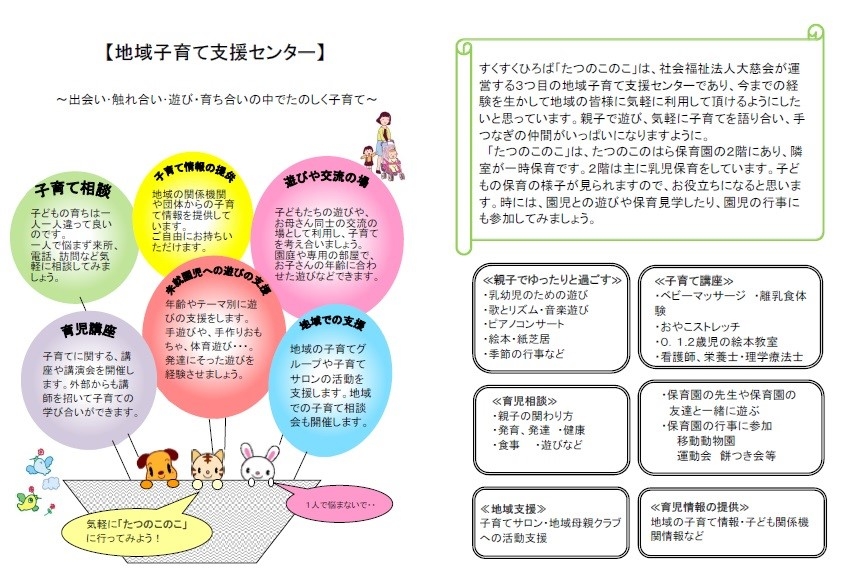 すくすくひろば(地域子育て支援センター)「たつのこのこ」について