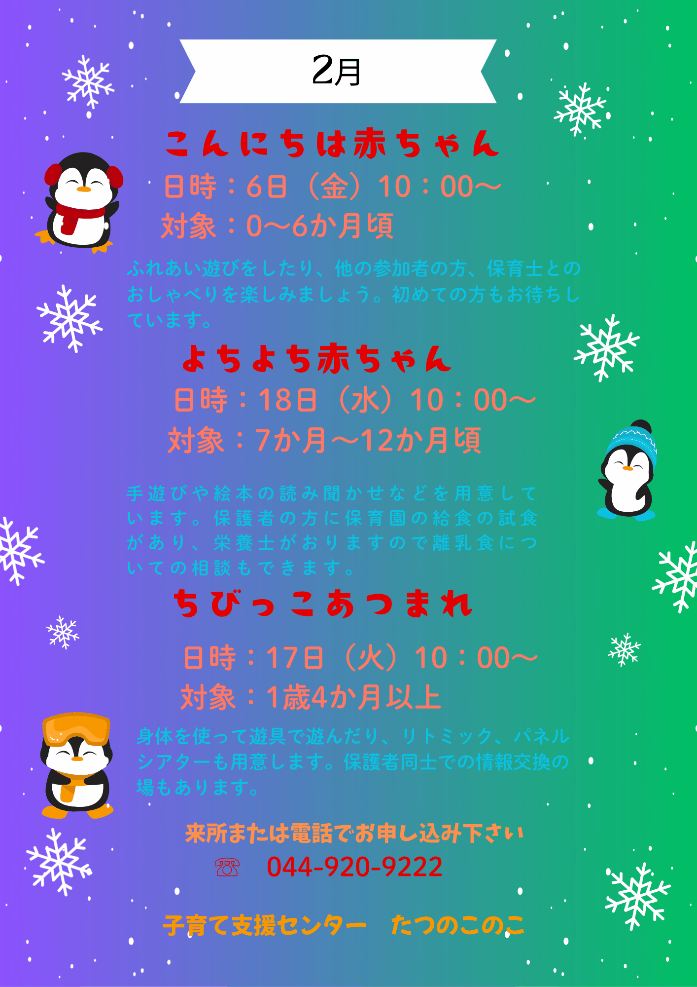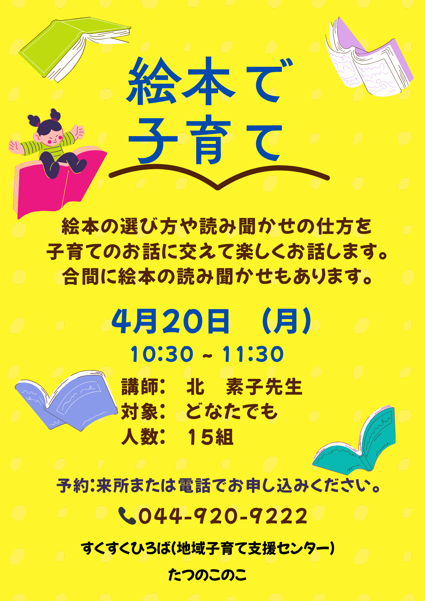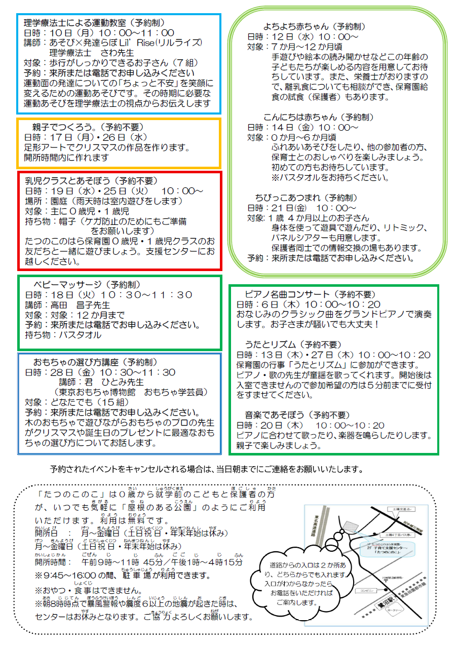 ※予約が必要なイベントについては、来所または電話でのお申込みが出来ます。