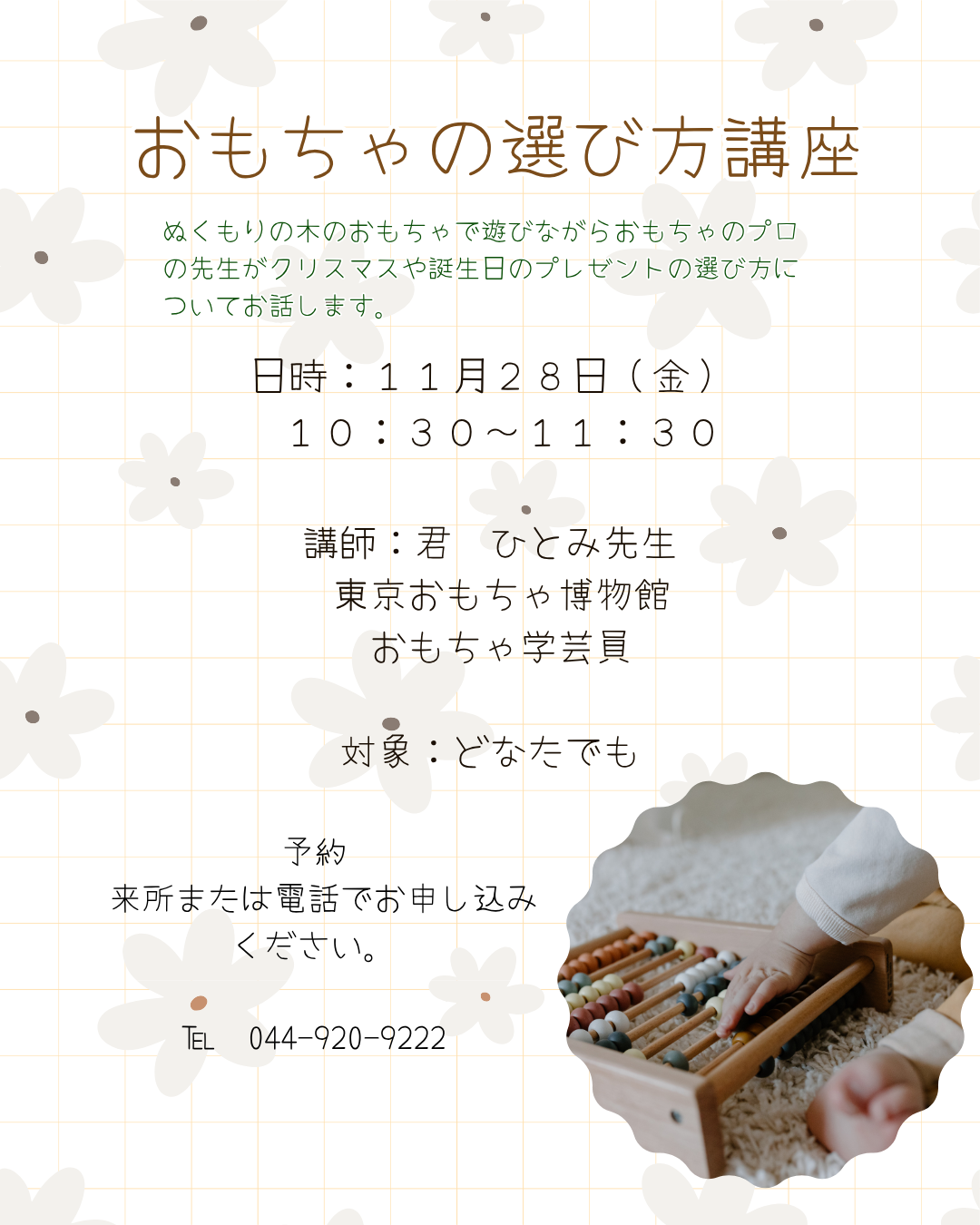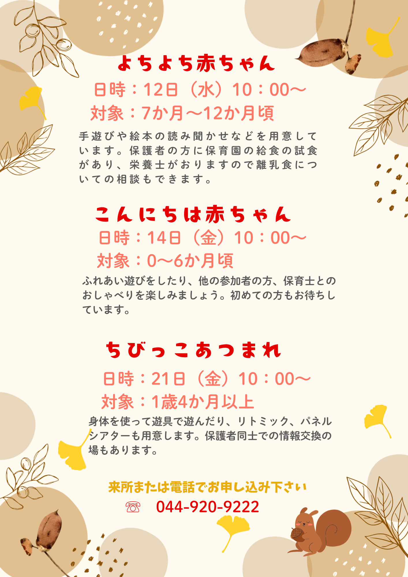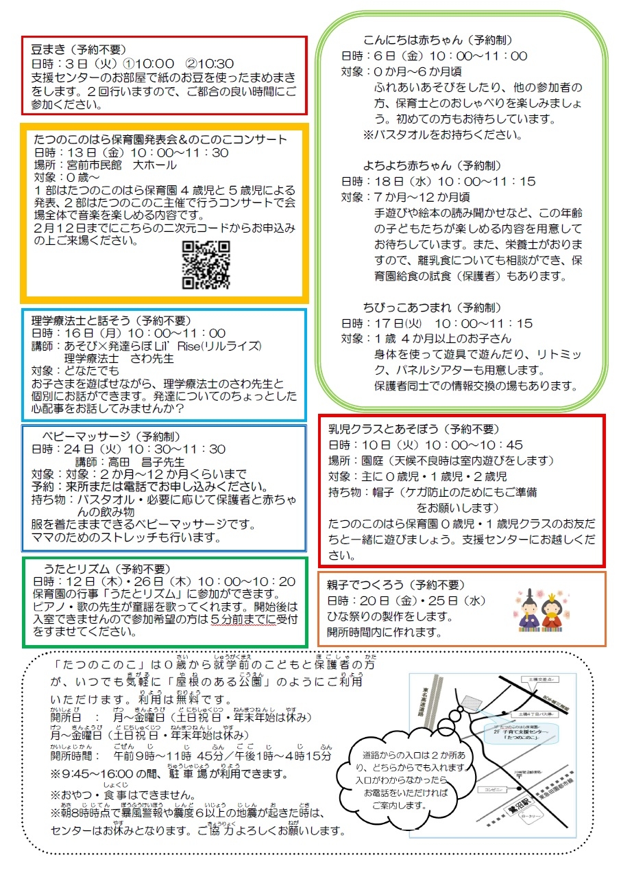 ※予約が必要なイベントについては、来所または電話でのお申込みが出来ます。